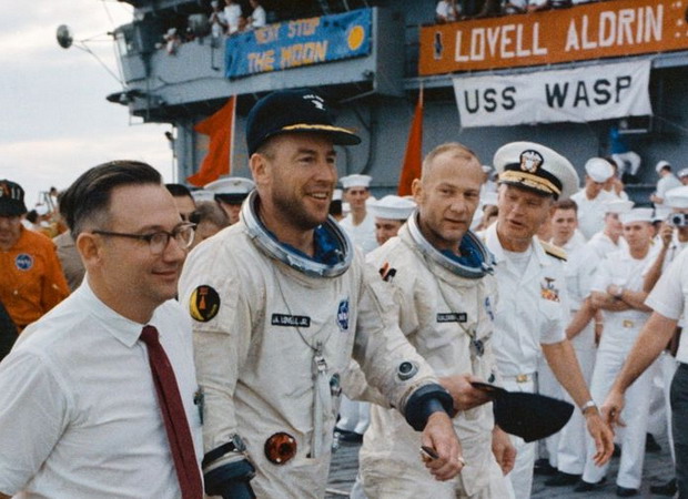 Lancement le 11.11.1966 Cette mission est la toute dernière du programme Gemini.Alors que, jusqu'au 20 mars 1965, les Américains n'avaient envoyé que quatre astronautes pour de courtes missions (contre 11 chez les Soviétiques, lors de missions toujours plus spectaculaires), ils ont expédié depuis neuf vaisseaux biplaces alors que les Soviétiques n'ont envoyé aucun de leurs cosmonautes. Maîtrisant les techniques de rendez-vous qui leurs seront nécessaires autour de la Lune, réussissant à s'élever à des altitudes très élevées et parvenant à effectuer des sorties extravéhiculaires sans se fatiguer de façon excessive, ils ont donc considérablement rattrapé leur retard sur leurs concurrents. Pour autant, ils n'ont pas encore fait la démonstration de pouvoir travailler efficacement à l'extérieur des vaisseaux. Des moyens de fixation ont donc été ajoutés sur Gemini 12 tandis que, lors de son entraînement, Aldrin est devenu le tout premier astronaute à s'exercer dans une piscine. Comme lors des précédents vols, Gemini 12 réalise des rendez-vous et des amarrages avec une fusée Agena. Cependant, l'injection vers une orbite élevée est annulée en raison de problèmes sur le propulseur de l'Agena. Aldrin réalise trois sorties (nombre record) dont une de 2h20 au cours de laquelle il photographie des étoiles, retire un collecteur de micrométéorites de la fusée Agena, mais aussi réalise le premier selfie spatial. Gemini 12 a marqué une conclusion réussie du programme Gemini, atteignant le dernier de ses objectifs en démontrant avec succès que les astronautes peuvent travailler efficacement à l'extérieur des vaisseaux spatiaux. Cela fut déterminant pour ouvrir la voie au programme Apollo afin qu'il atteigne son objectif de poser un homme sur la Lune d'ici la fin des années 1960. Le