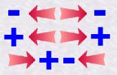 (comme par exemple l'électron et le noyau atomique) et repousse
