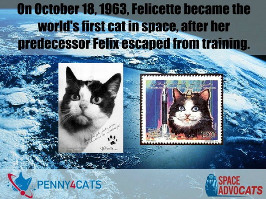 Félicette fait partie d'un programme avec quatorze autres chats visant à améliorer les connaissances en biologie spatiale sous la conduite du médecin général des armées Robert Grandpierre. Après trois lancements réussis de rats (dont le plus notable fut le rat Hector sur Véronique AGI n° 24), il décide de mobiliser un chat, car c'est l'animal le plus utilisé en neurophysiologie. Le programme d'entraînement comprend de nombreuses séances de conditionnement afin d'habituer les chats aux vols spatiaux : immobilisation dans une boîte pendant plusieurs heures, accoutumance au bruit de la fusée et aux vibrations, séance en centrifugeuse. Le 18 octobre 1963, elle est placée dans une capsule sur la fusée Véronique AGI n° 475. Le tir s’effectue à 8H 09 depuis la base de lancement d'Hammaguir dans le désert algérien. Félicette est récupérée vivante après 10 min 32 s de vol, dont cinq minutes en impesanteur après avoir culminé à 157km d'altitude. L'état de santé du félin, qui a subi 9,5 G, était surveillé au moyen d'encéphalogramme. Elle est récupérée, en bonne santé, treize minutes après que sa capsule soit retombée à 2,4 km du pas de tir. L'aventure de