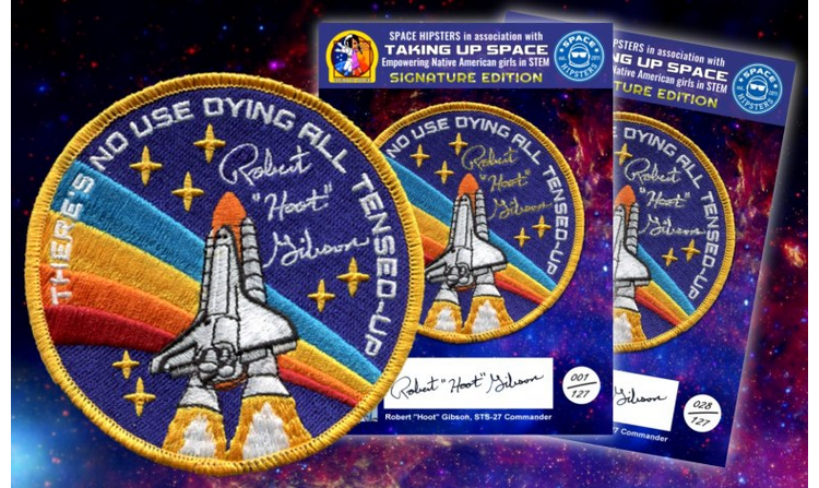 Ecusson de la série "Signature Edition" produit pour l'association "Taking up Space", et avec la signature brodée de Robert "Hoot" Gibson qui a cinq vols spatiaux à son actif.
