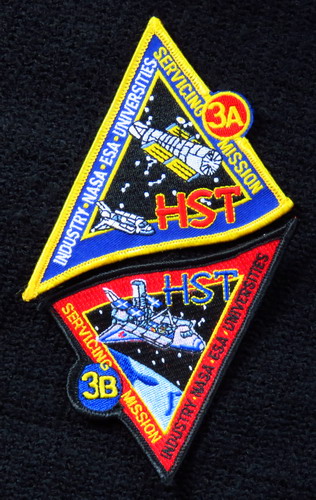 En plus du lancement (STS-31) de Hubble, il faudra 5 missions SM pour le réparer et l'entretenir. Voici les badges de chacune de ces missions: