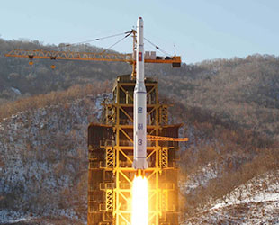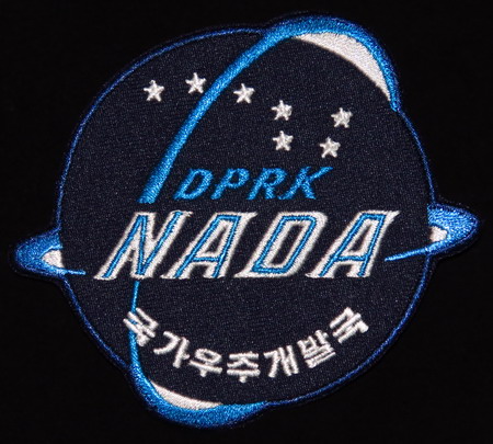 On remarque sur le globe bleu du ciel la constellation de la Grande Ourse et deux orbites de satellite. Les mauvaises langues hispanophiles font remarquer que NADA signifie pour eux: RIEN! C'est oublier que la Corée du Nord a lancé, par ses propres moyens, son premier satellite en Décembre 2012, rejoignant ainsi le club très fermé des puissances spatiales autonomes. |