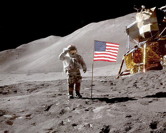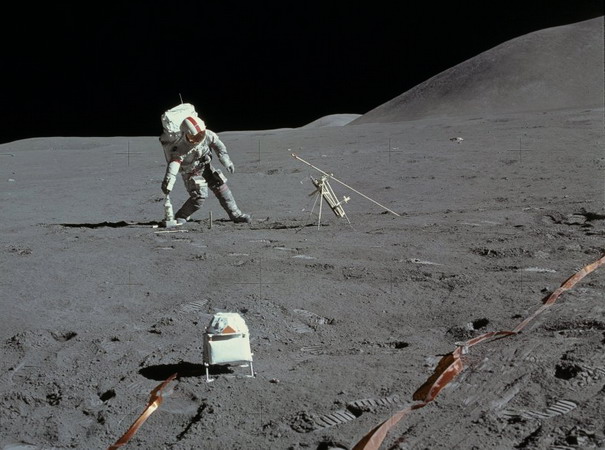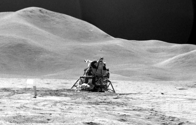 Le fond représente le site d'alunissage