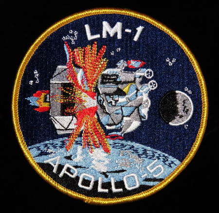 Grâce à une lettre découverte dans la succession de Walter Schirra, nous savons désormais que cet écusson a été conçu par un employé de Grumman à l'usine de Bethpage en 1965. Il était destiné à être porté par le personnel travaillant sur les systèmes de propulsion LEM. (source: http://www.crewpatches.com) ![]() Ce patch apparaît sur une bannière vintage affichée au Cradle of Aviation Museum de Long Island, New York. |