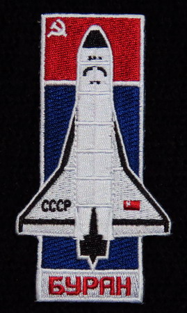 La Navette Spatiale BOURANE a été construite en 2 exemplaires. Sur ce badge, on voit la Navette accolée au lanceur Energia sur son pas de tir. En bordure est inscrit "Vaisseau Cosmique Réutilisable" |