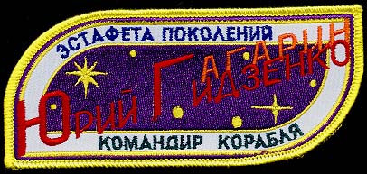 le nom russe de Youri Guidzenko; en orange, le nom de Gagarine utilise la