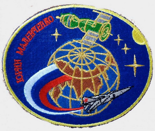 Youri MALENCHENKO. Il a volé sur Soyouz TM-19 . Sur le badge, une fusée Soyouz largue des