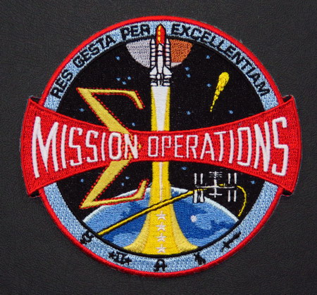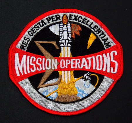 La navette est devenu une pièce maîtresse de la conception, et la dénomination est passée de "Mission Control" à "Mission Operations" pour rendre hommage non seulement aux contrôleurs de vol, mais aussi aux contributions de l'équipe MOD plus large. Cet emblème a été créé en reconnaissance de la contribution unique du service des opérations de mission au programme spatial habité. Son libellé souligne l'engagement des opérations à assurer la sécurité de l'équipage et le succès de la mission. « L'excellence par la réussite » est la traduction latine de l'expression. Il symbolise l'engagement des opérations à croire en l'excellence et la persévérance, ainsi qu'à assurer le succès de la mission et le retour sain et sauf des équipages. |