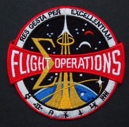Avec la dénomination "FLIGHT OPERATIONS" qui remplace l'ancien "Mission Operations". Deux petits croissants blanc et rouge apparaissent sur ce badge (à droite de la fusée) et symbolisent la nouvelle orientation du programme spatial tourné vers l'exploration de la Lune et de la planète Mars. Le vecteur-fusée fait partie intégrante du fameux Pins des astronautes. Un nouveau pictogramme apparait pour la seule et unique fois entre STS et ISS: la station russe MIR qui a permis aux astronautes étatsuniens de tester des séjours orbitaux de longue durée. |