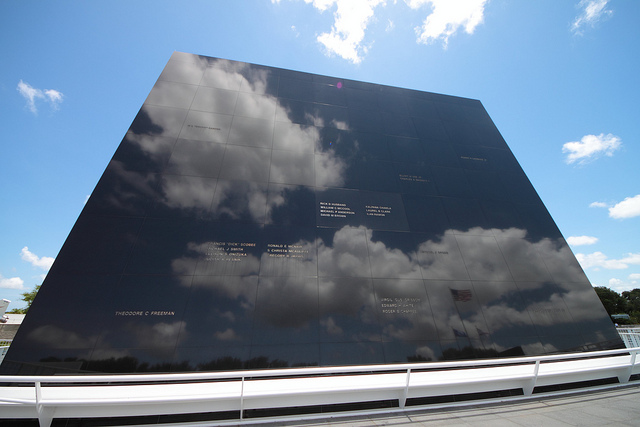 Le Space Mirror Memorial au Kenedy Space Center: Tous les noms d'astronautes décédés (accidents ou missions) y figurent.