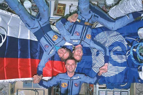 L'équipage a occupé la station Mir pendant 179 jours. Le badge
