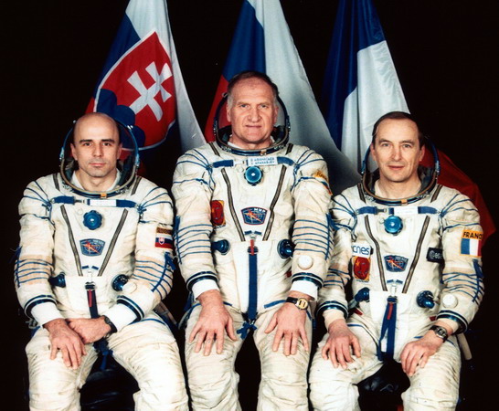 I. BELLA (Slovaquie) est retourné sur Terre à bord de Soyouz TM-28 le 28 Fevrier 1999. Jean Paul Haignere a séjourné sur Mir du 22 Février au 27 Août 1999, en compagnie des russes Afanassiev et Avdeyev. Il a participé à l'expérience REFLEKTOR (voir plus bas). le bandeau en bas rappelle que cette mission franco-russe est une coopération du CNES français et des sociétés russes RKA (agence spatiale russe) et RKK Energia. |