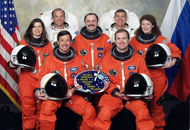 Equipage: James D. Halsell, Jr., commandant Scott J. Horowitz, pilote Mary E. Weber, spécialiste de mission Jeffrey N. Williams, spécialiste de mission James S. Voss, spécialiste de mission Susan J. Helms, spécialiste de mission Youri V. Oussachev, spécialiste de mission (Russie) |