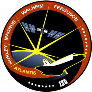 station ISS. Atlantis est centrée sur des éléments de l'emblème de la NASA décrivant comment la navette spatiale est au cœur de la NASA depuis 30 ans. Il rend également hommage à toute l'équipe de la NASA et des travailleurs qui ont rendu possible toutes les réalisations incroyables de la navette spatiale. Omega, la dernière lettre de l'alphabet grec, reconnaît cette mission comme le dernier vol du programme de la navette spatiale. |