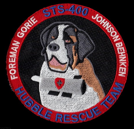 Avec le retard pris par STS-125, l'équipage de secours a été basé sur celui de STS-126 Cette conception de la mission de lancement sur demande de la navette spatiale STS-400 utilise le symbole nautique international d'une bouée de sauvetage comme base du badge. Il fournit un élément de conception immédiatement reconnaissable ainsi qu'un espacement naturel pour les noms de famille des membres d'équipage. Endeavour est en position de rendez-vous avec Atlantis pour affecter le sauvetage. Le symbole de l'astronaute en or illustre les astronautes aidant les astronautes. La trajectoire orbitale du symbole de l'astronaute s'étend d'un orbiteur à l'autre pour symboliser le transfert en toute sécurité de l'équipage du sinistré au navire de sauvetage. Le cercle bleu intérieur représente la Terre. Les rayons du symbole de l'astronaute touchent le cercle pour représenter le retour en toute sécurité de l'équipage du STS-125. Des étoiles peuvent avoir été ajoutées pour représenter les onze astronautes. Conception de Tim Gagnon et Jorge Cartes