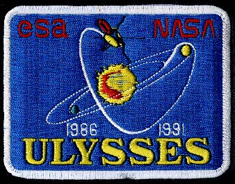 ULYSSES Les dates du badges sont erronnées car la sonde aurait dû décoller en 1986 et survoler le pôle solaire en 1991: L'accident de Challenger retarda en fait son lancement en 1990. |