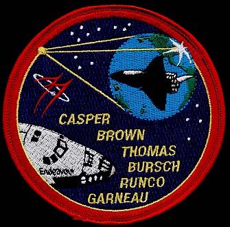 Equipage: Commandant : John H. Casper Pilote : Curtis L. Brown Spécialiste de mission : Andy Thomas Spécialiste de mission : Daniel W. Bursch Spécialiste de mission : Mario Runco, Jr. Spécialiste de mission : Marc Garneau (Canada) |