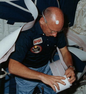 A travers les hublots du cockpit de la Navette, on remarque un astronaute qui porte des lunettes (le commandant Richard Truly) ! Ce dernier est le seul vétéran et a déja volé à bord de STS-2, d'où son regard un peu blasé! Les 4 autres astronautes sont des nouveaux et ont donc un regard plus.curieux ou plus... stressé! Selon les personnes impliquées dans la mission, la véritable histoire derrière ce badge était qu'il montrait le spécialiste de mission à lunettes, le Dr Bill Thornton, interessé par le sang des autres membres de l'équipage; Ceux-ci essayaient frénétiquement de s'éloigner de lui. Dans le cadre de l'enquête de Thornton sur le mal de l'espace, il a dû prélever du sang sur ses collègues membres d'équipage ...Information tirée du site SPACEPATCHES.NL |