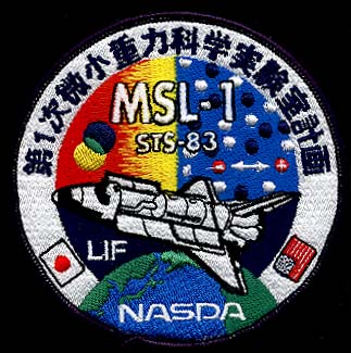 | Badge japonais sur la participation de l'agence spatiale japonaise NASDA aux experiences embarqués dans MSL-1 pendant STS-83. |