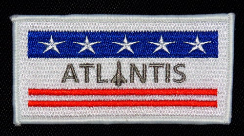 Les missions de la Navette sont aussi dénommées STS pour Space Transportation System (Système de Transport Spatial) Sur ce badge, on voit la Navette en position de