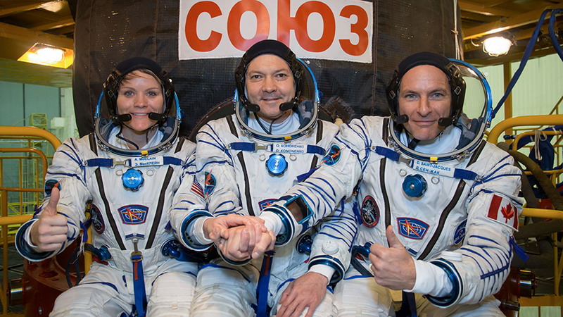 Equipage: - Oleg KONONENKO, commandant (Russie) - David SAINT-JACQUES, ingénieur de vol (Canada) - Anne McCLAIN, ingénieure de vol (USA) |
