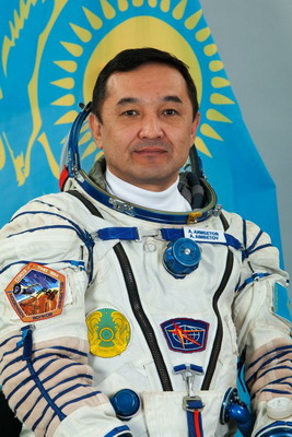 ![]() Un autre badge de l'Agence spatiale kazakhe: KAZCOSMOS, porté sur sa combinaison |