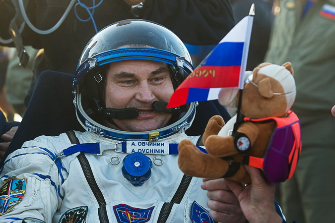 sur la badge de Soyouz TMA-01M où volait Skripochka).
