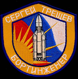 Sergueï TRETCHEV. Il faisait partie de la doublure de l'équipage de Soyouz TM-22 et 27. Ce badge montre le lanceur de la société russe Energia. Tretchev a travaillé pour cette société. Il aurait dû volé en tant qu'ingénieur de bord, ce qui est indiqué au bas du badge. |