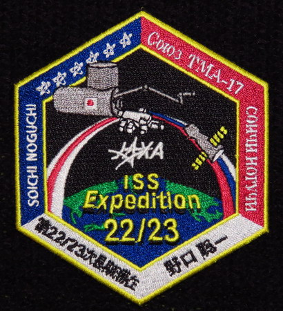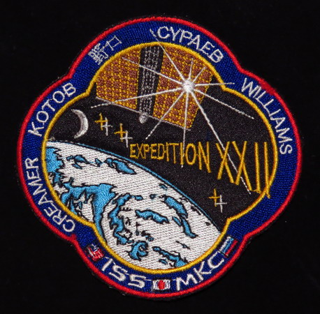 La 22e expédition vers la Station spatiale internationale est consacrée aux dernières étapes de l'assemblage et à la transition vers une utilisation complète en tant que laboratoire en orbite. Le soleil, qui alimente la station spatiale en énergie et en vie, rayonne à travers l’un des panneaux solaires alors que l’ISS tourne autour de la Terre. Les océans et l'atmosphère, qui assurent le maintien de la vie sur Terre, sont présentés dans toute leur beauté. La lune plane au loin comme objectif de la prochaine ère d'exploration. Les six étoiles illustrent les capacités accrues des effectifs de l'équipage. À la frontière se trouvent les drapeaux nationaux des membres de l’équipage ainsi que leurs noms de famille dans leur langue maternelle. L'expédition XXII poursuit ses efforts pour acquérir les connaissances nécessaires pour étendre la portée de l'exploration de la Terre à la lune et au-delà. (Source NASA) Création: Tim GAGNON & Jorge CARTES Du 1 Décembre 2009 au 18 Mars 2010. 1 Décembre 2009: Désamarrage de Soyouz TMA-15 et début officiel de l'Expédition-22. 22 Décembre 2009: Amarrage de Soyouz TMA-17 avec Kotov, Noguchi et Creamer qui rejoignent Williams et Surayev déjà présents à bord de l'ISS. 10 Février 2010: Amarrage de STS-130 et installation du module Tranquility et de la Cupola.. 3 EVA. 18 Mars 2010: Désamarrage de Soyouz TMA-16 avec Surayev et Williams: fin d'Expedition-22 et début d'Expédition-23. |
