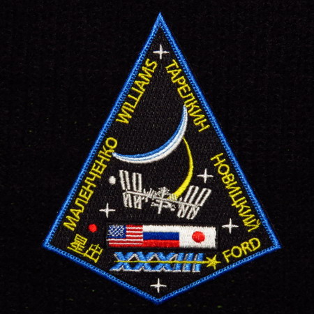 Le badge Expedition 33 représente la Station spatiale internationale (ISS) en orbite autour de la Terre et dans l’avenir. Les drapeaux nationaux du Japon, de la Russie et des États-Unis d'Amérique représentent l'équipage de l'expédition 33, qui comprend six astronautes et cosmonautes du Japon, de la Russie et des États-Unis. Les cinq étoiles blanches représentent les partenaires participant au programme ISS - le Canada, les pays européens, le Japon, la Russie et les États-Unis. L’Expédition 33 poursuivra les travaux des trente-deux équipes d’expédition précédentes à bord du laboratoire multinational dans des domaines tels que la biologie et la biotechnologie, les sciences de la Terre et de l’espace, les activités éducatives, la recherche humaine, les sciences physiques et physiques ainsi que le développement et la démonstration technologiques. (Source NASA) Du 16 Septembre 2012 au 18 Novembre 2012 16