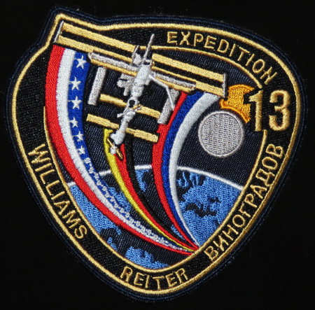 La conception dynamique du logo Expedition 36 illustre les panneaux solaires emblématiques de la Station spatiale internationale (ISS). Les angles inclinés dénotent une énergie cinétique allant de la Terre en bas à droite à la partie supérieure gauche de la forme triangulaire du pavé, représentant les capacités infinies de recherche scientifique, d'éducation et de vol spatial de longue durée possible avec l'ISS, ainsi que notre objectif d'exploration future au-delà de la Station spatiale. Les numéros 3 et 6 s'entrelacent harmonieusement pour former le numéro d'expédition 36 et sa coloration grise signifie l'unité et la neutralité entre tous les partenaires internationaux de l'ISS. La palette de couleurs bleue et dorée du patch représente la manière subtile dont l'orbite centrale en or enveloppe le numéro 36 pour former un trident à son extrémité inférieure droite. Le trident symbolise également la mer, l'air et la terre, qui composent la Terre. (Source NASA) Du 14 Mai 2013 au 10 Septembre 2013 1414 Mai 2013: Désamarrage de Soyouz TMA-07M et début officiel de l'Expédition-36. 29 Mai 2013: Amarrage de Soyouz TMA-09M avec Yurchikhin, Parmitano et Nyberg qui complète ainsi l'équipage ISS à 6 cosmonautes. 15 Juin 2013: Amarrage du vaisseau cargo européen ATV-4 "Albert Einstein" lancé depuis la base de Kourou. 28 Juillet 2013: Amarrage du cargo russe Progress M-20M 9 Août 2013: Amarrage du cargo japonais HTV-4 "Kounotori-4" 10 Septembre 2013: Désamarrage de Soyouz TMA-08M et retour sur Terre de Vinogradov, Misurkin et Cassidy après 166 jours de mission.Fin officielle de l'Expédition-36. Participation de l'Italien Luca PARMITANO de l'ESA pendant l'Expédition 36/37: Mission VOLARE