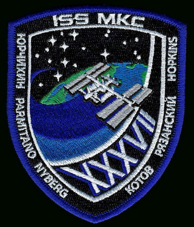 Pour l'Expédition-37, on peut parler de véritable "Guerre des badges". Résumons: fin 2011, le commandant Yurchikhin adopte un logo (créé par le couple Cartes-Gagnon et adopté par Padalka pour son Expédition-32) pour son expédition-37. Celui-ci est surnmmé '"la planète des fleurs", vu son aspect très coloré! Problème: la NASA a déjà adopté un autre badge produit par AB Emblems ! Face à l'opposition de persistante de Yurchikhin d'accepter ce dernier badge, un troisième badge sera donc conçu par Jorge Cartes, aidé cette fois par Luc van den Abeelen et Erik van der Hoorn de Spacepatches.nl... Ce dernier logo à l'Homme de Vitruve sera le badge officiel figurant sur la photo officielle de l'équipage de l'Expédition-37. |