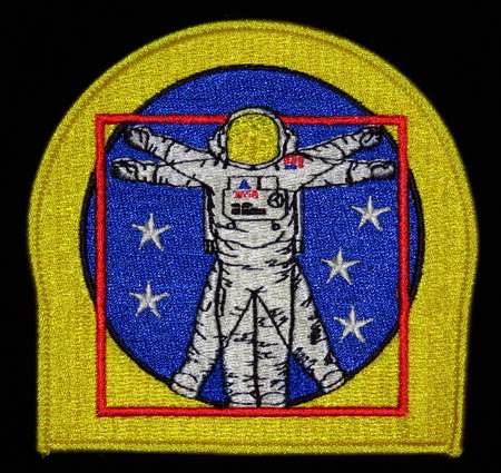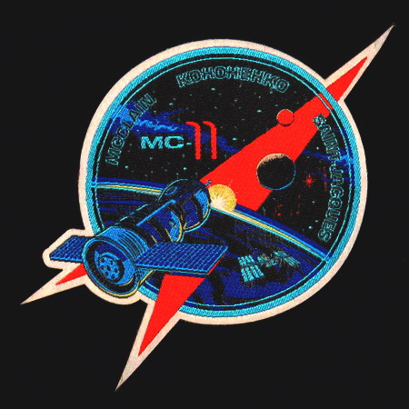 A noter que ce badge ne contient que 5 noms, car il était prévu un vol taxi pour amener sur l'ISS le premier cosmonaute des Emirats Arabes Unis (mission reportée). |
