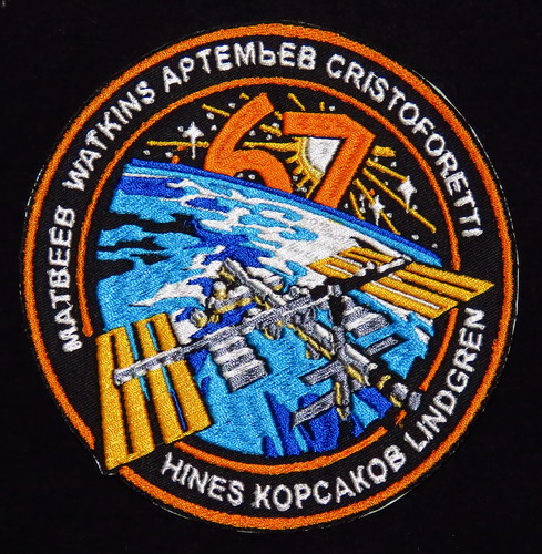 Variante de l'écusson officiel avec rajout des noms de l'équipage. Produit par AB-Emblems, cet écusson ne semble pas avoir été porté pendant cette mission. Sans doute le producteur a-t-il voulu imité le patch de l'expédition-67 qui a une variante avec noms sur la bordure et qui a, lui, effectivement été porté par les cosmonautes russes de l'éxpedition. |