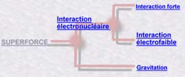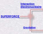 La superforce se scinde en deux forces: la gravitation, et la force électronucléaire.