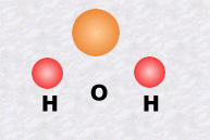 La molécule d'eau, notée H2O, est formée d'un atome d'oxygène et de deux atomes d'hydrogène.