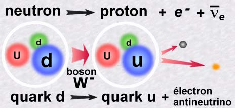 la transmutation d'un neutron en proton.