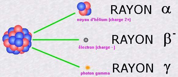 Il existe trois variétés de radioactivité caractérisées par l'émission de différents rayons émis par le noyau de l'atome: